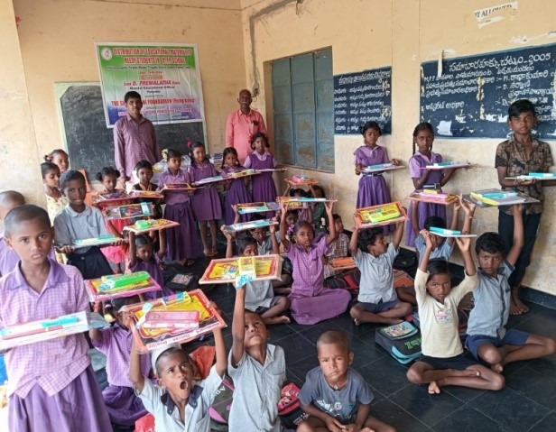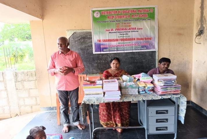 We would like to submit the report of the distribution of Education Materials to 43 needy students on 19.06.2024 of M.P.P. School Pothumangunta, Yerpedu Mandal of Tirupathi District of Andhra Pradesh, India. The distribution was organized at the school premises in the presence of Smt. D. Premalatha Garu Mandal Educational Officer Yerpedu and headmaster and teachers.